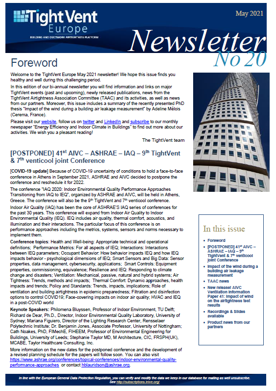 TightVent newsletter May 2021 issue available